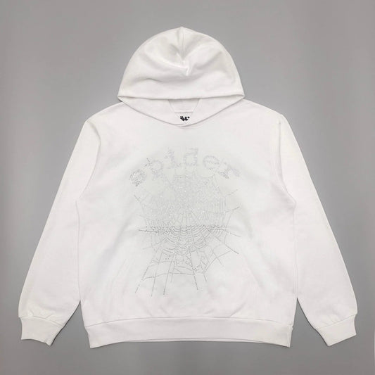 SP5DER OG RHINESTONE LOGO HOODIE WHITE